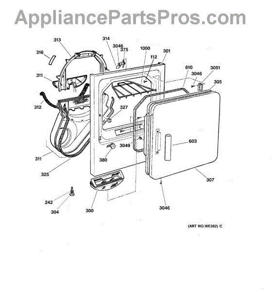 The Handle Door is an OEM part for GE dryers. This door handle allows for easy opening and closing of the dryer door, providing a secure grip to access the drum.