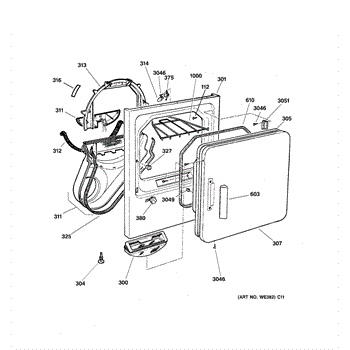 The Handle Door is an OEM part for GE dryers. This door handle allows for easy opening and closing of the dryer door, providing a secure grip to access the drum.