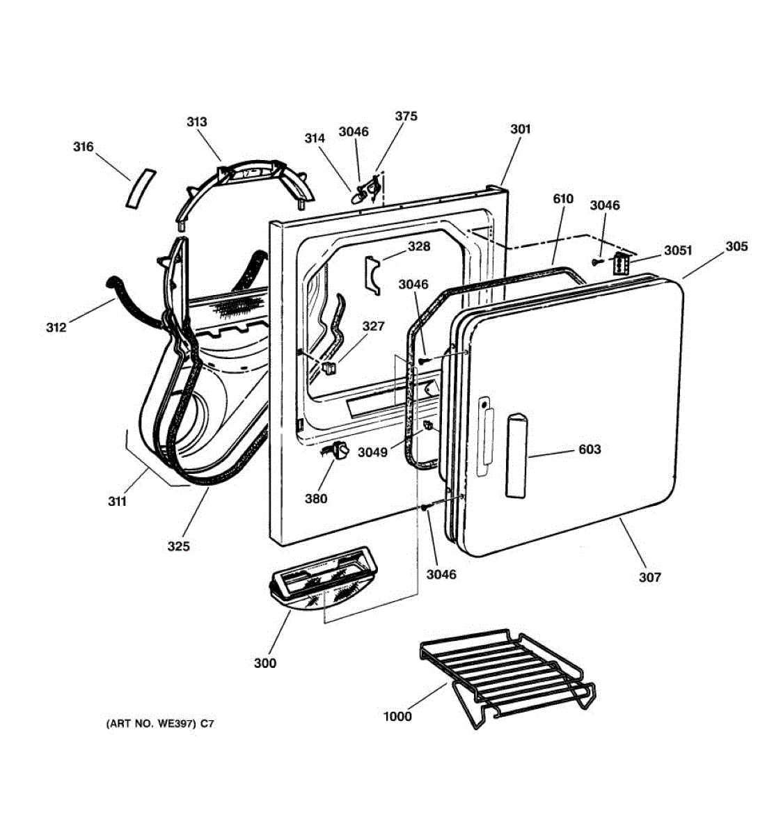 Parts for Ge DPSR405EA0WW: 02 - Front Panel & Door Parts