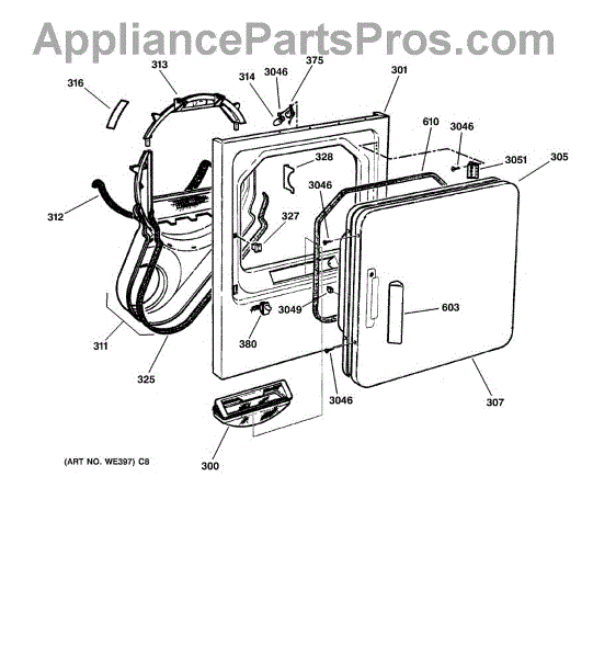 The Handle Door is an OEM part for GE dryers. This door handle allows for easy opening and closing of the dryer door, providing a secure grip to access the drum.