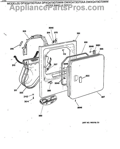 Parts for Ge DPXQ473GT0WW: 02 - Front Panel & Door Parts