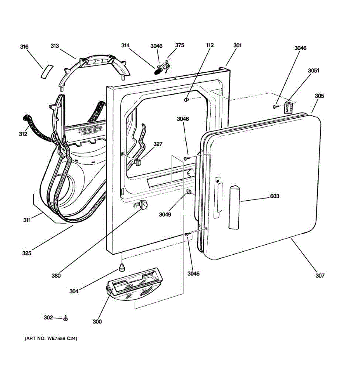 Parts for Ge DSLVR48GH5WW: 02 - Front Panel & Door Parts