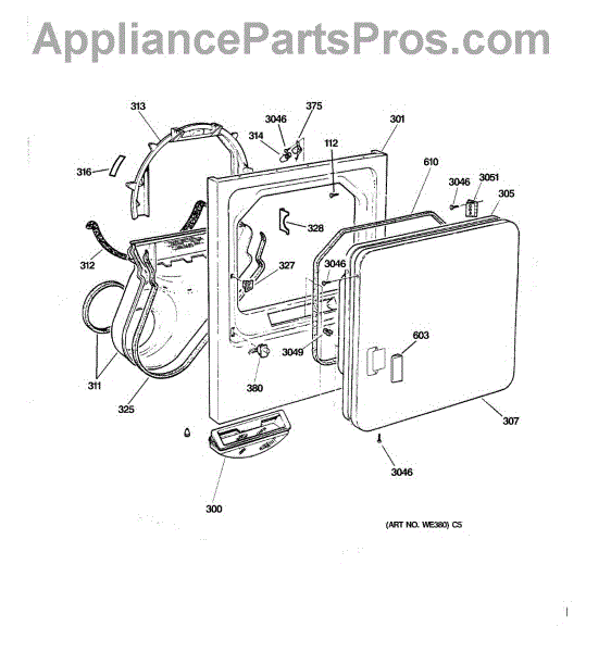 The Handle Door is an OEM part for GE dryers. This door handle allows for easy opening and closing of the dryer door, providing a secure grip to access the drum.