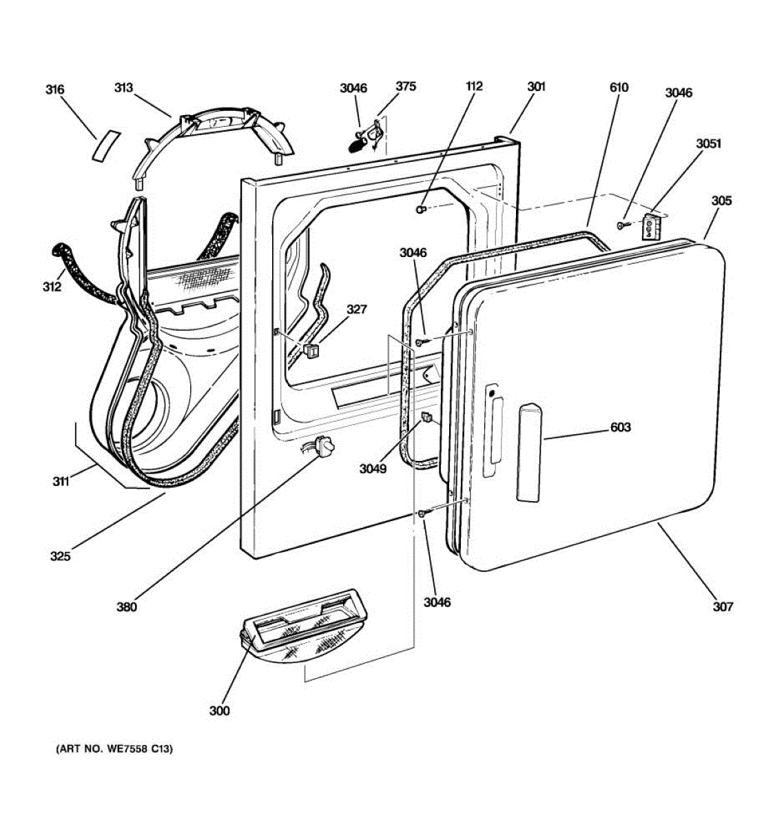 Inner door assembly for your dryer. Installs on the front panel to complete the door frame. Replace if cracked, broken, or damaged from wear.