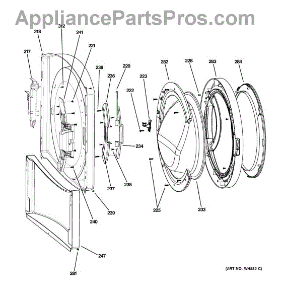 The Door Lock Assembly is an OEM replacement part for GE washing machines. It secures the washer door safely closed during operation. The assembly features a locking mechanism that withstands vigorous cycles while preventing small hands or objects from opening it inadvertently. Causes of a bad door lock can include worn parts from repetitive use that become misaligned and fail to lock properly. Damage from forced opening can deform lock components. Symptoms of a bad door lock assembly include: