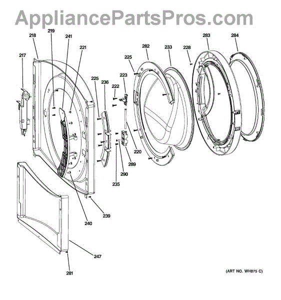 The Door Lock Assembly is an OEM replacement part for GE washing machines. It secures the washer door safely closed during operation. The assembly features a locking mechanism that withstands vigorous cycles while preventing small hands or objects from opening it inadvertently. Causes of a bad door lock can include worn parts from repetitive use that become misaligned and fail to lock properly. Damage from forced opening can deform lock components. Symptoms of a bad door lock assembly include: