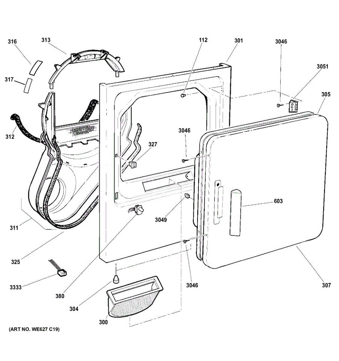 Seals the gap between the drum and front panel to prevent air leaks and noise. Replace if worn, damaged, or causing squeaking sounds. Verify fit with your model.