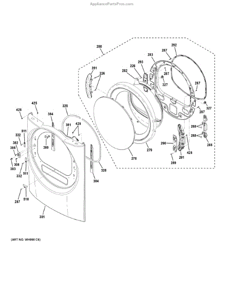 Replace your dryer's front panel assembly if the original is cracked, dented, or damaged. This structural panel covers the front of your dryer cabinet.