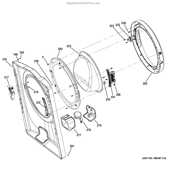 Parts for Ge GFWN1300J1WW: Front Panel & Door Parts