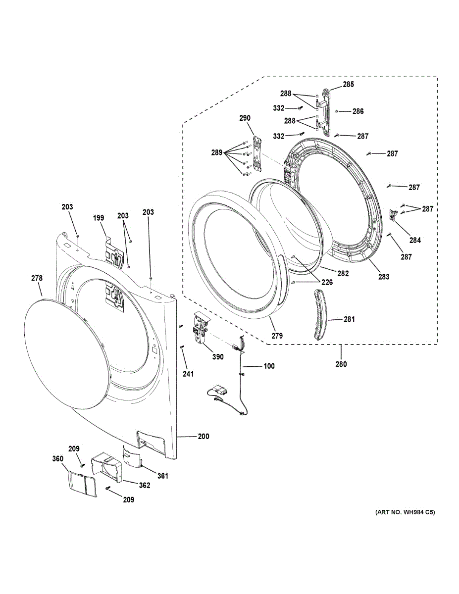 Door frame assembly for front-load washers. Surrounds the door opening and provides structural support. Replace if cracked, damaged, or broken.