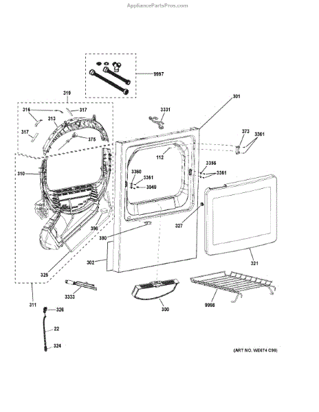 The Bearing Slide Assembly is an OEM component for GE electric clothes dryers. As an integral part of the dryer tumbler system, this assembly includes the bearing slides that allow smooth rotation of the tumbler drum during drying cycles. Symptoms of faulty bearing slides include: