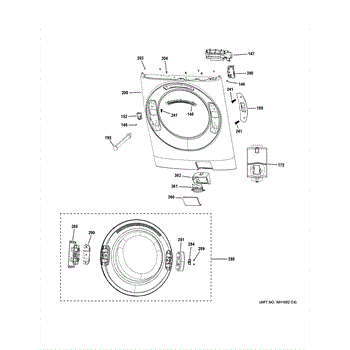 The FRONT PANEL is an OEM part for GE washers. It serves as the outer casing located at the front of the washing machine and protects internal components. The front panel bears much of the visual design elements and branding of the appliance.