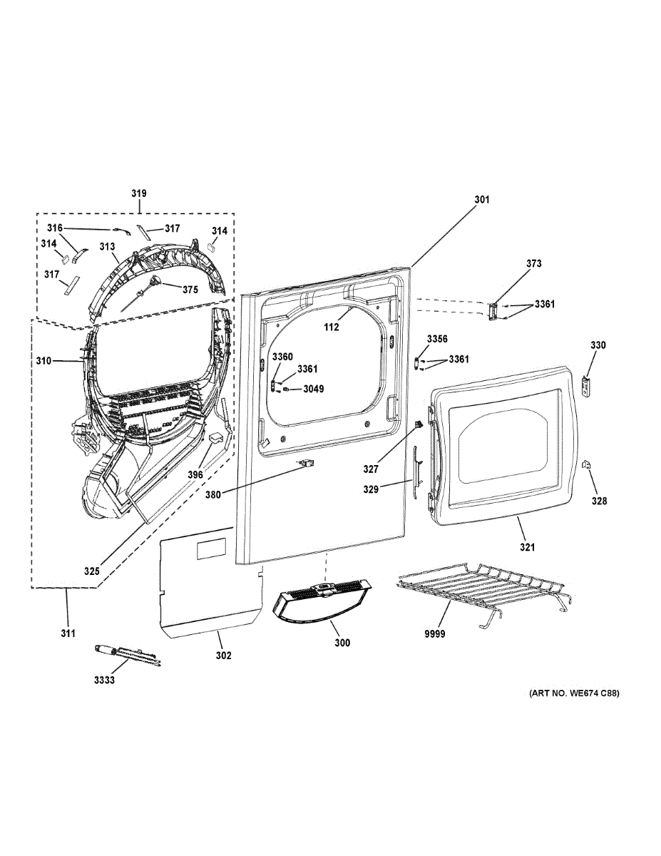 White dryer door panel that replaces a cracked, dented, or discolored front door. Restores appearance and ensures proper closure on your dryer.