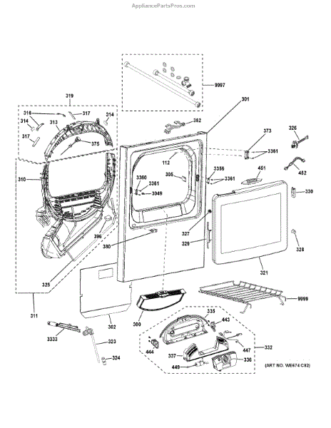 Causes of a bad front drum support assembly can include wear and tear from regular use, damage from foreign objects entering the drum, or deterioration of the support glides or rollers over time.