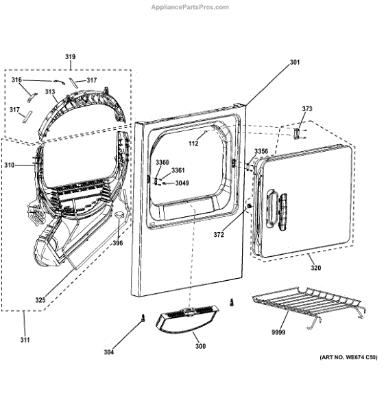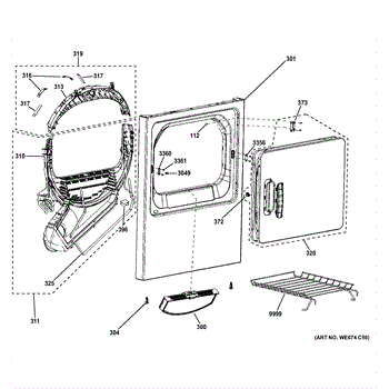 The Door Assembly is an OEM part for GE dryers. This complete door assembly includes the door frame, glass, and handle, providing a secure and functional closure for the dryer.