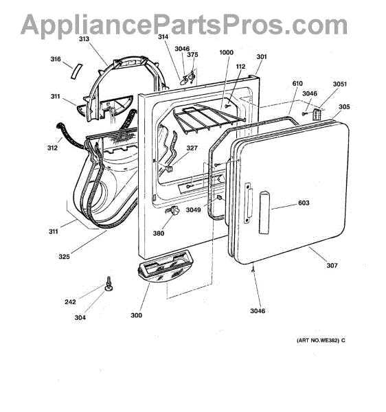 Parts for Ge DPSQ495GT3WW: 02 - Front Panel & Door Parts
