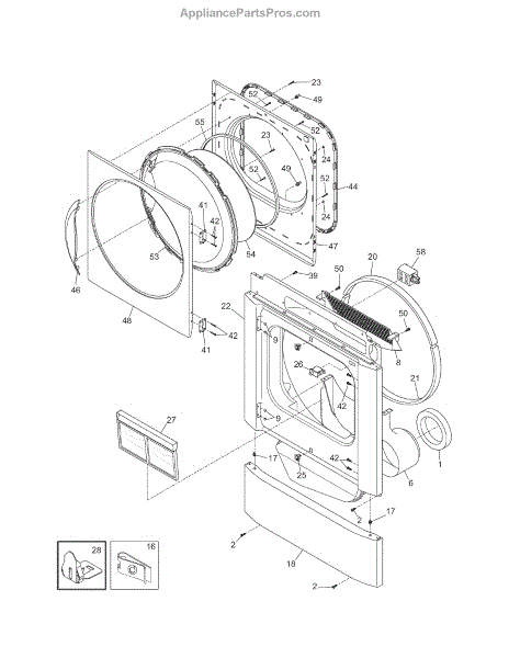 The Dryer Seal is an OEM replacment part for Frigidaire dryers. It is located at the doorway opening where the drum rotates and helps prevent lint, moisture, and heat from escaping. The seal is a crucial component that ensures efficient drying and heat retention within the dryer drum.