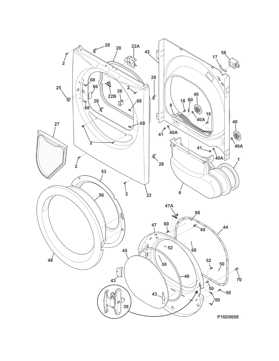 Replacement door for your dryer. Installs on the front cabinet to access the drum. Order a new door if yours is cracked, dented, or damaged beyond repair.