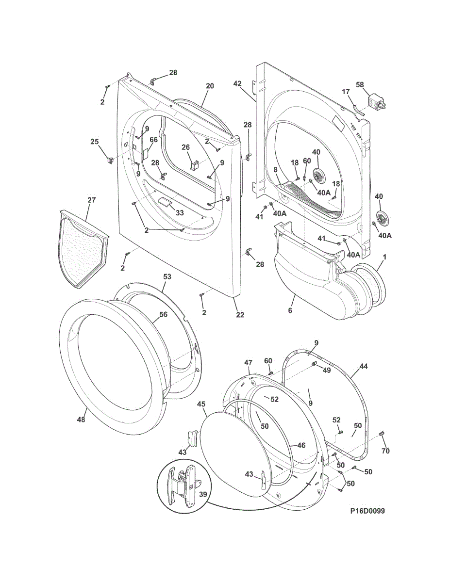 Replacement door for your dryer. Installs on the front cabinet to access the drum. Order a new door if yours is cracked, dented, or damaged beyond repair.