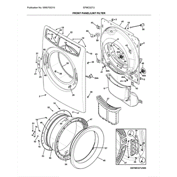 Secures dryer door hinge to cabinet for proper alignment and smooth operation. Replace if door sags, won't close flush, or seal feels loose. Verify fit with your model number before ordering.