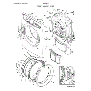 Parts for Electrolux EFME527UIW0: Front Panel / Lint Filter Parts