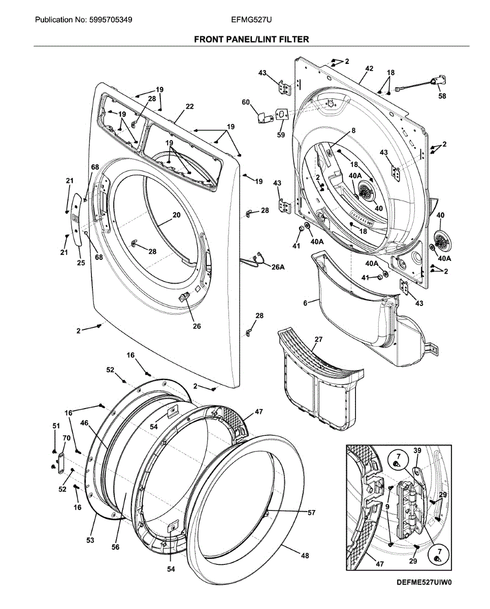Replace your dryer's inner door assembly if the plastic frame is cracked, warped, or broken. This component mounts to the outer door panel.