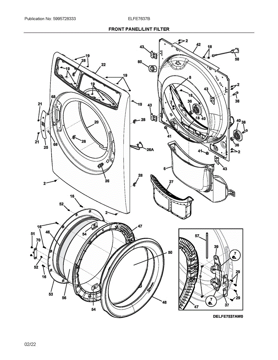 Replacement frame assembly that secures the front trim and supports the dryer door. Needed when the original frame is damaged, bent, or cracked.