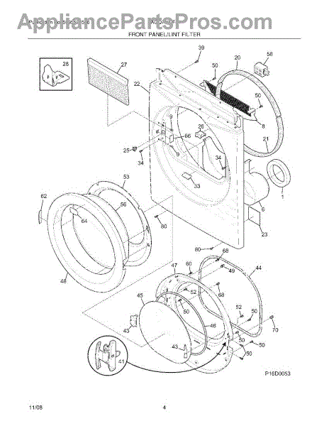 Parts for Electrolux SAGQ7000FS1: 05 - Front Panel / Lint Filter Parts