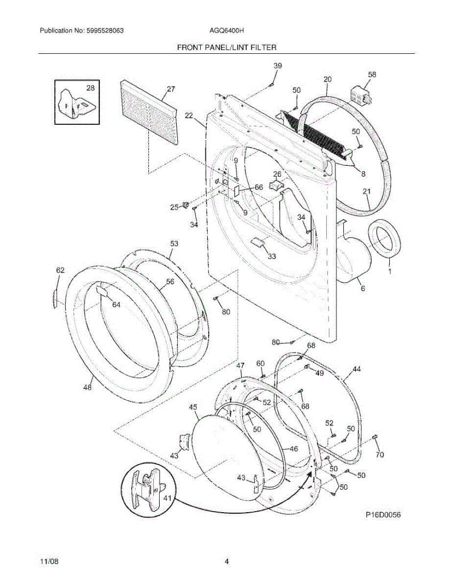 Replacement door panel for dryers and laundry centers. Restores exterior appearance when the original panel is cracked, dented, or damaged.