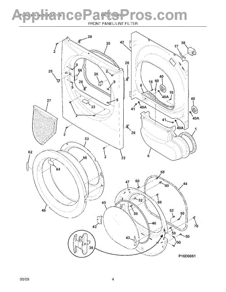 Parts for Frigidaire BAQE7073KW0: 05 - Front Panel / Lint Filter Parts