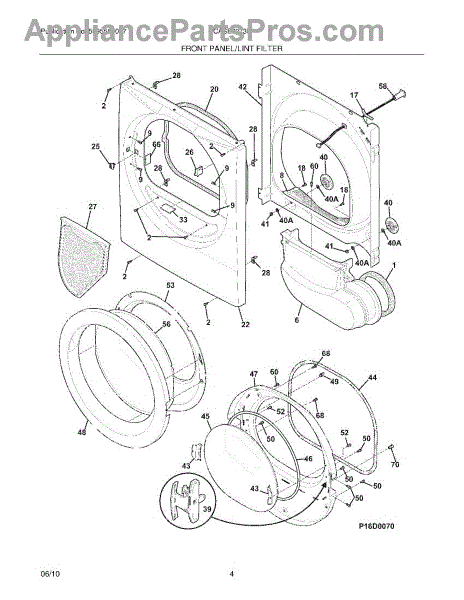Parts for Frigidaire CASE7073LA0: 05 - Front Panel / Lint Filter Parts