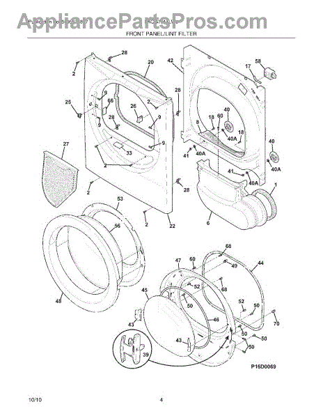 Parts for Frigidaire FAQG7011LW0: 05 - Front Panel / Lint Filter Parts