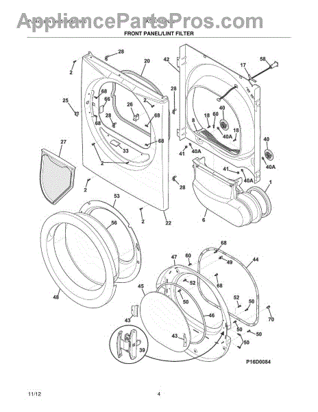 Parts for Frigidaire FASG7073NA2: 05 - Front Panel / Lint Filter Parts