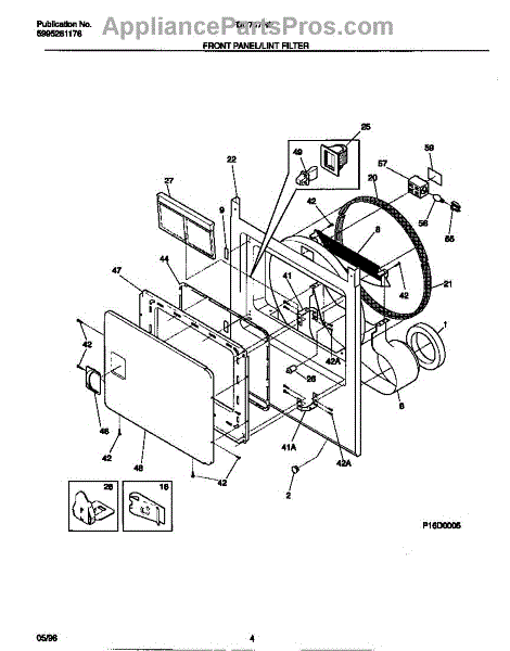Parts for Frigidaire FDG747RES0: 03 - Front Panel / Lint Filter Parts