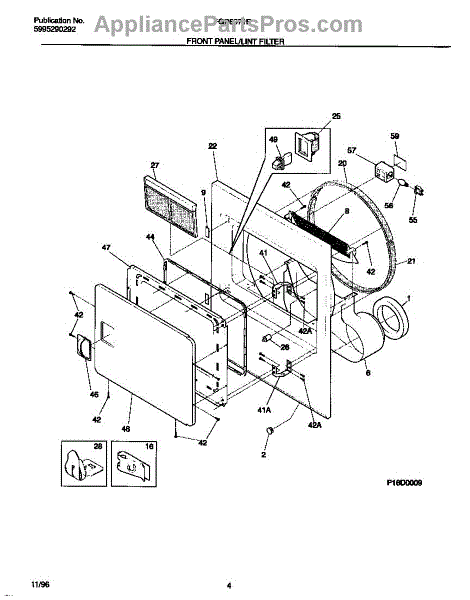 Parts for Frigidaire FDG8971EW0: 03 - Front Panel / Lint Filter Parts