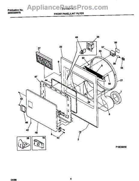 Parts for Frigidaire FDG8971EW1: 03 - Front Panel / Lint Filter Parts