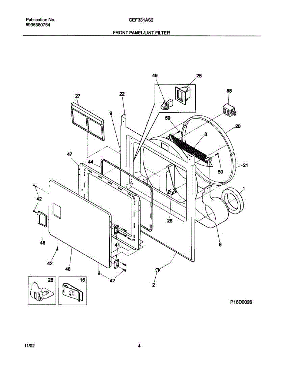 Parts for Gibson GEF331AS2: 05 - Front Panel / Lint Filter Parts