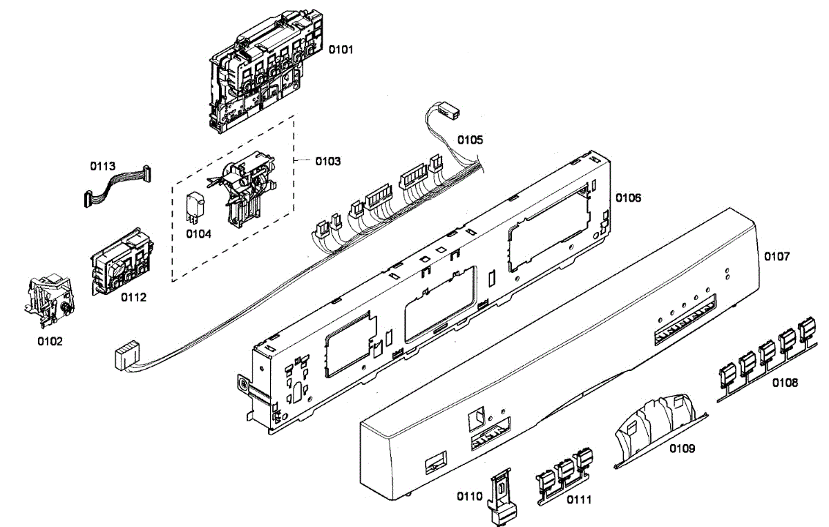 Structural frame that supports the dishwasher user interface and front fascia. Replace if cracked, warped, or broken clips cause the console to separate.