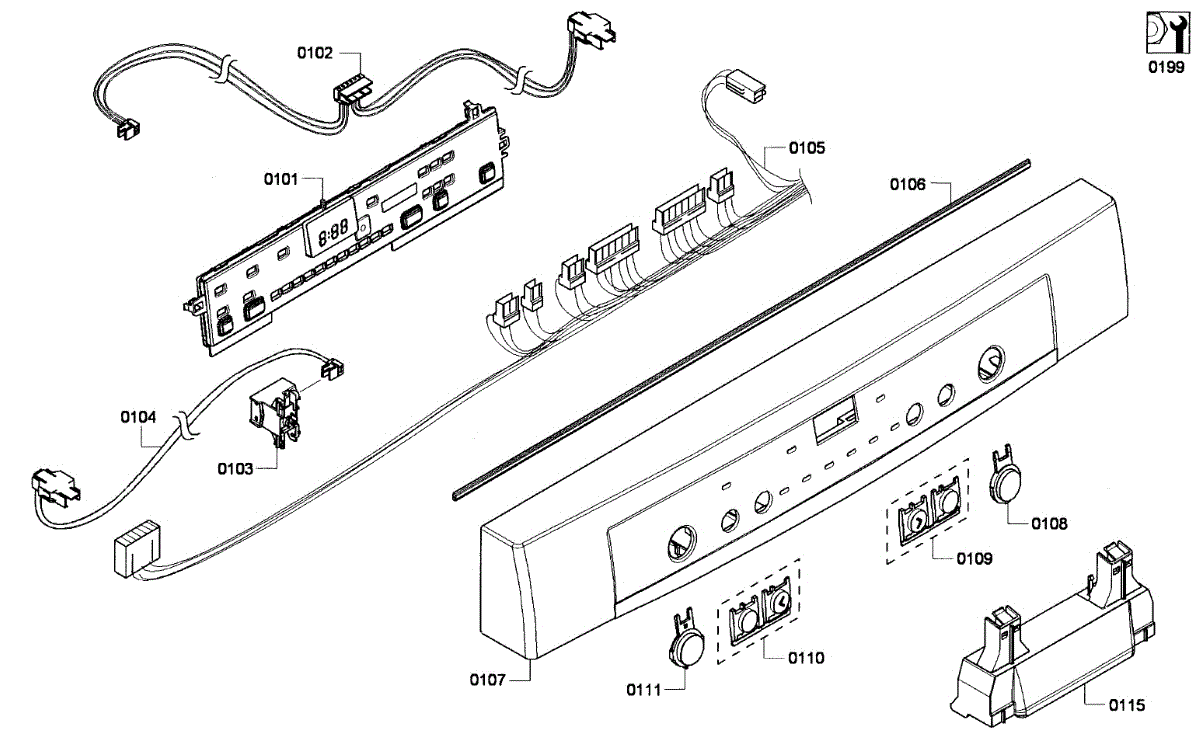 Fix dishwasher electrical issues with a new cable harness. Solves control panel failures, display problems, and function errors. Basic repair skill needed.