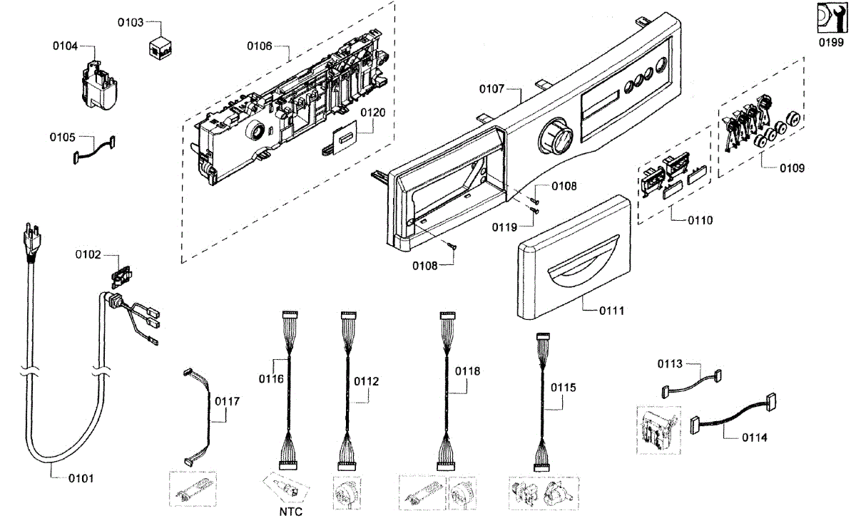 Fix washer electrical issues with this cable harness. Resolves no power, control failures, or intermittent operation. Moderate DIY repair.