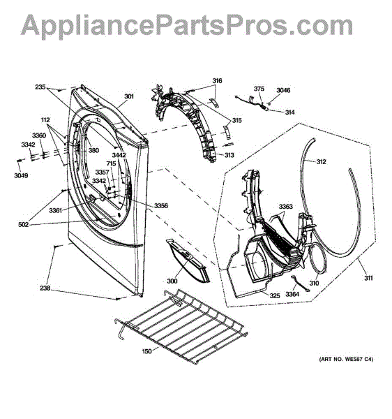 Seals the gap between the dryer drum and front panel to retain heat and reduce friction. Replace if worn, torn, or causing the drum to slip out of place.