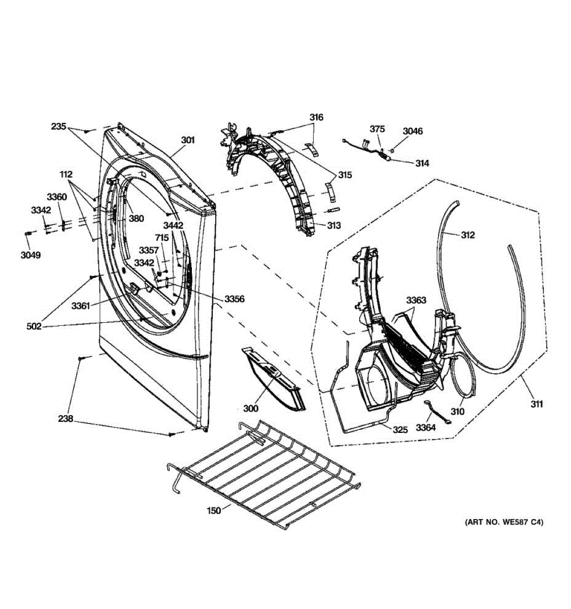 Seals the gap between the dryer drum and front panel to retain heat and reduce friction. Replace if worn, torn, or causing the drum to slip out of place.