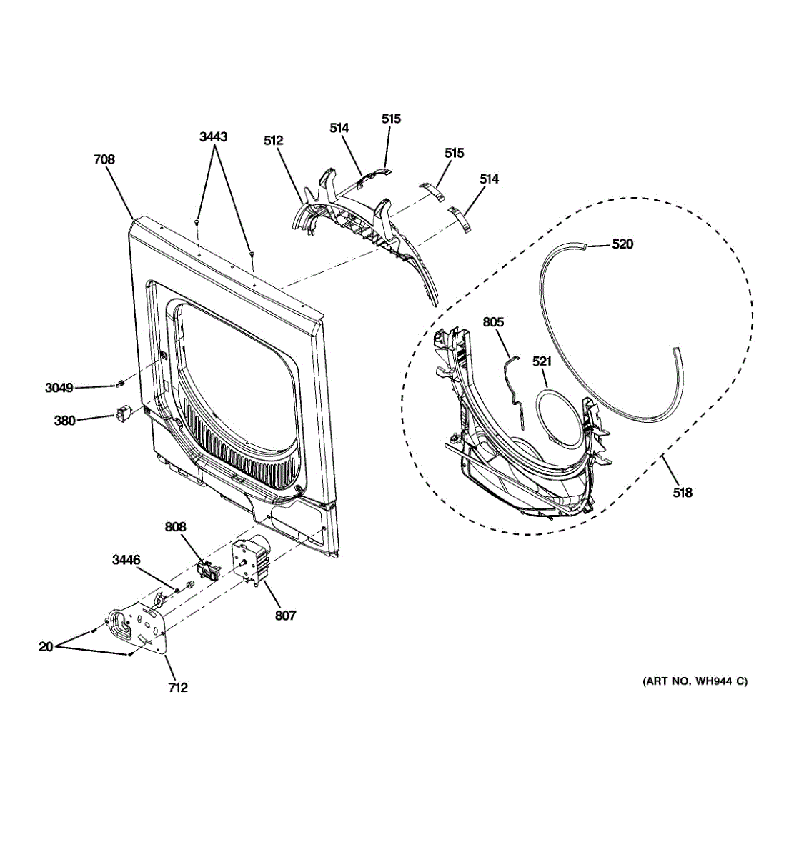 Seals dryer exhaust duct connection to contain airflow and prevent lint entering cabinet. Replace if cracked or loose to restore efficiency. Verify fit.