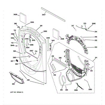 The Trap Duct Assembly is an OEM part for GE dryers. This part directs the airflow from the dryer drum to the exhaust vent. This assembly ensures efficient drying by guiding hot air out of the dryer while collecting lint and debris in the trap, preventing it from clogging the venting system.