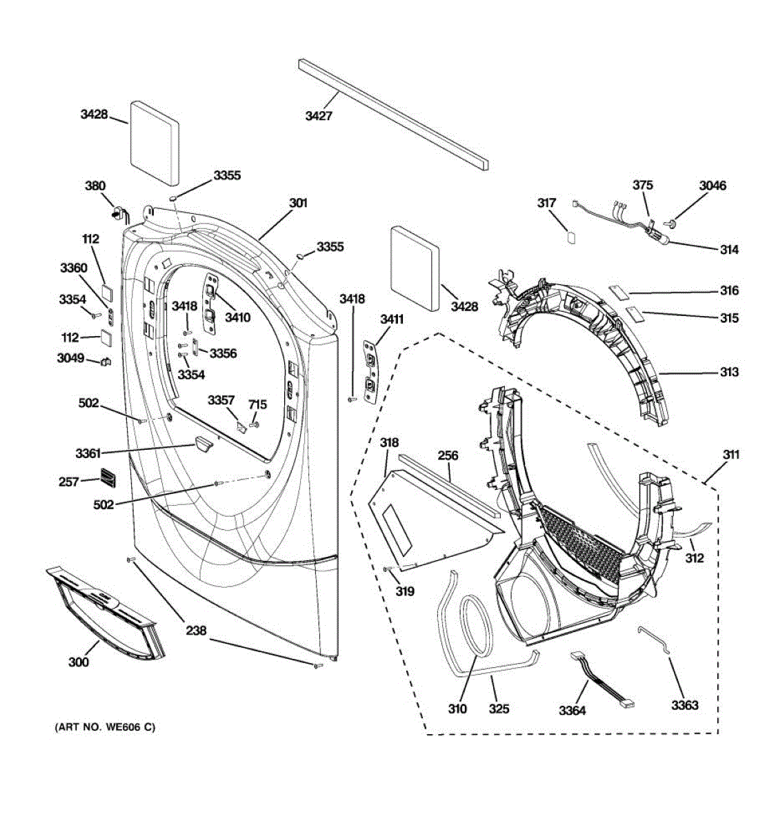 Seals the gap between the dryer drum and front panel to retain heat and reduce friction. Replace if worn, torn, or causing the drum to slip out of place.