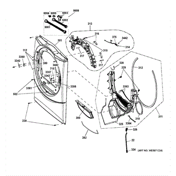The Trap Duct Assembly is an OEM part for GE dryers. This part directs the airflow from the dryer drum to the exhaust vent. This assembly ensures efficient drying by guiding hot air out of the dryer while collecting lint and debris in the trap, preventing it from clogging the venting system.