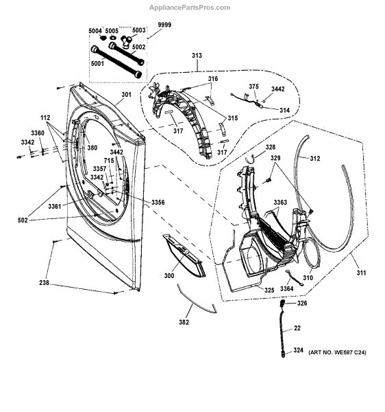 The Bearing Slide Assembly is an OEM component for GE electric clothes dryers. As an integral part of the dryer tumbler system, this assembly includes the bearing slides that allow smooth rotation of the tumbler drum during drying cycles. Symptoms of faulty bearing slides include: