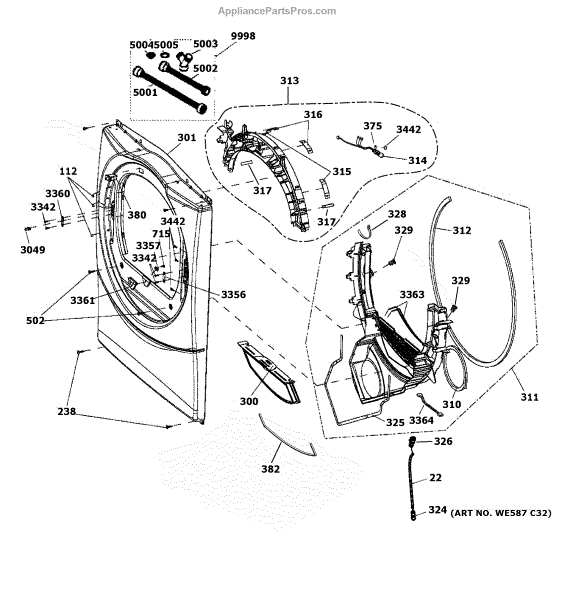 The Bearing Slide Assembly is an OEM component for GE electric clothes dryers. As an integral part of the dryer tumbler system, this assembly includes the bearing slides that allow smooth rotation of the tumbler drum during drying cycles. Symptoms of faulty bearing slides include: