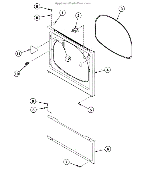This door catch assembly secures the door when closed so the machine can run. A worn or broken catch can keep the door from latching firmly, causing start issues or interruptions during a cycle.