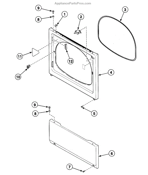 This door catch assembly secures the door when closed so the machine can run. A worn or broken catch can keep the door from latching firmly, causing start issues or interruptions during a cycle.